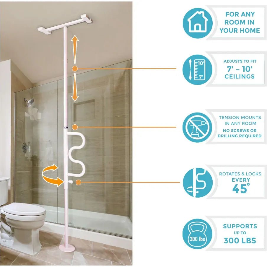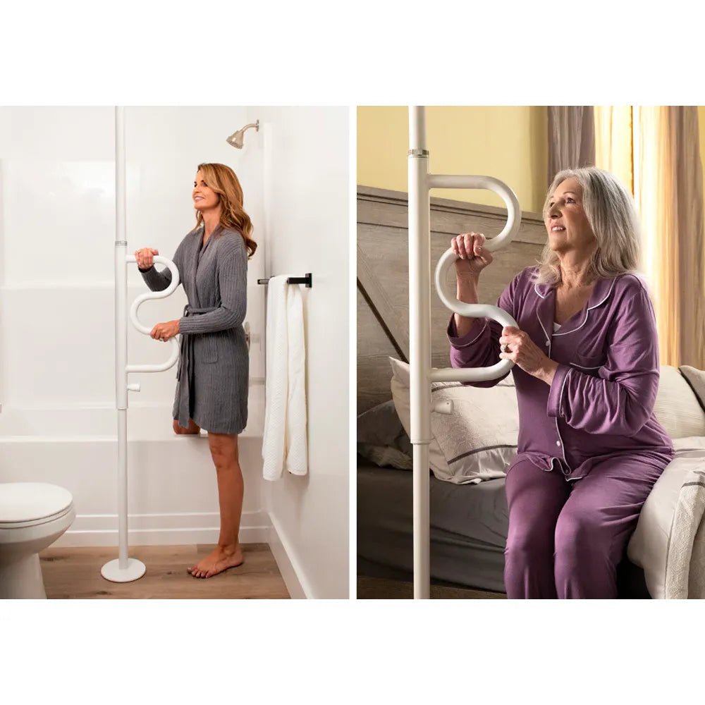 The Stander Security Pole and Curve Bar provides safe, stable support anywhere in your home. Built from durable zinc-plated, powder-coated steel, it installs easily with tension between floor and ceiling—no drilling required. Ideal for bedrooms, bathrooms, living rooms, or stairways, it helps prevent falls and promotes independence.