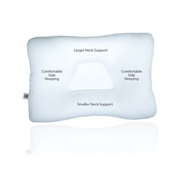 This Tri-Core Pillow is designed for either back or side sleeping. It provides proper neck alignment that helps to relieve pain in the neck, head, and shoulder. It's filled with Fortrel BactiShield fiber that helps combat growth of bacteria. The difference between standard support (firm) and gentle is subtle. The gentle support option contains less fiber, which slightly reduces the height and firmness of the pillow.