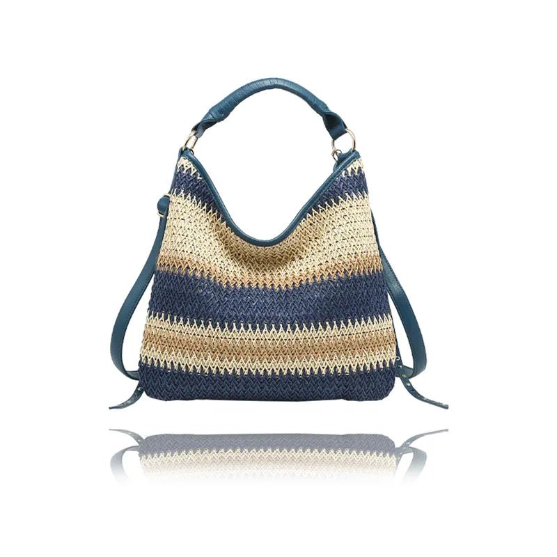 LaVolta Anna Straw Front Hobo Handbag – Navy Woven Shoulder Bag