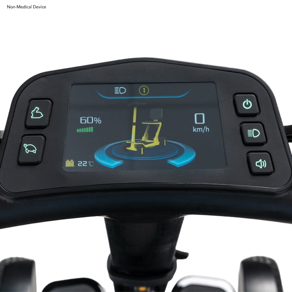 It's all in the name. Harnessing the power of its full carbon fiber frame, the Go Go® Carbon offers exceptional portability in a four-wheel scooter. It weighs just 35 pounds (15.9 kg) without its lithium battery, folds down in seconds for convenient transport and storage, and can be towed like luggage through airports and other environments.