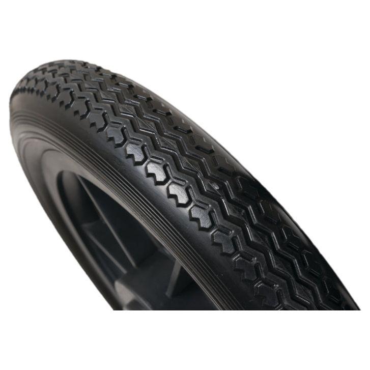 - Composite wheels with solid rubber tires are lightweight and maintenance free