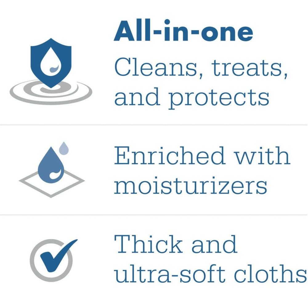 - Soothe, moisturize, and condition skin all with one easy to use cleansing cloth.