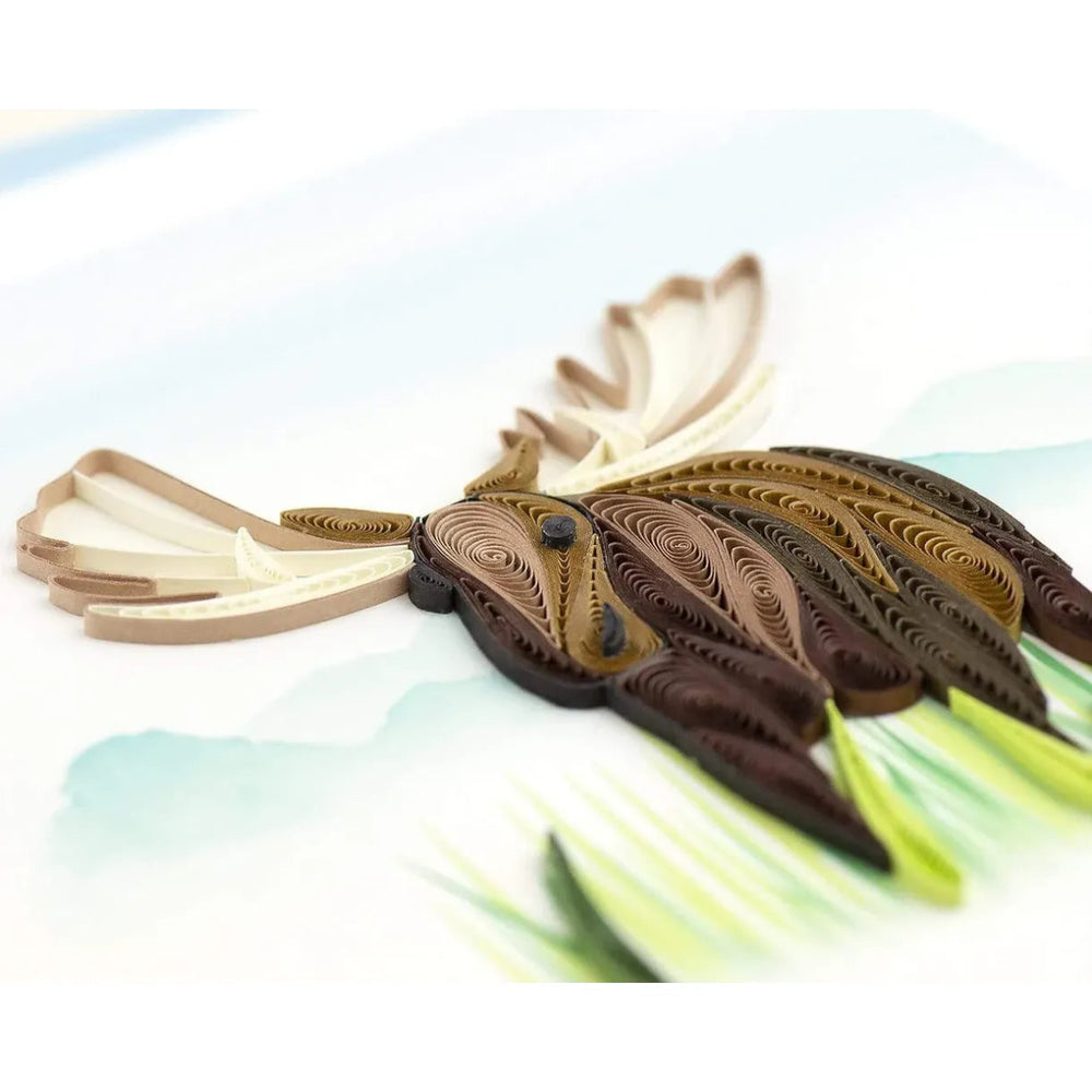 Bring the beauty of the wilderness to life with the Quilled Moose Greeting Card, a stunning handcrafted creation that captures the peaceful charm of nature. Featuring a quilled moose in rich shades of brown with striking white antlers, it stands gracefully in a lush field of grass beneath a softly painted watercolor sky. Every intricate coil and curve is shaped by hand, making each card a miniature work of art and a meaningful keepsake.