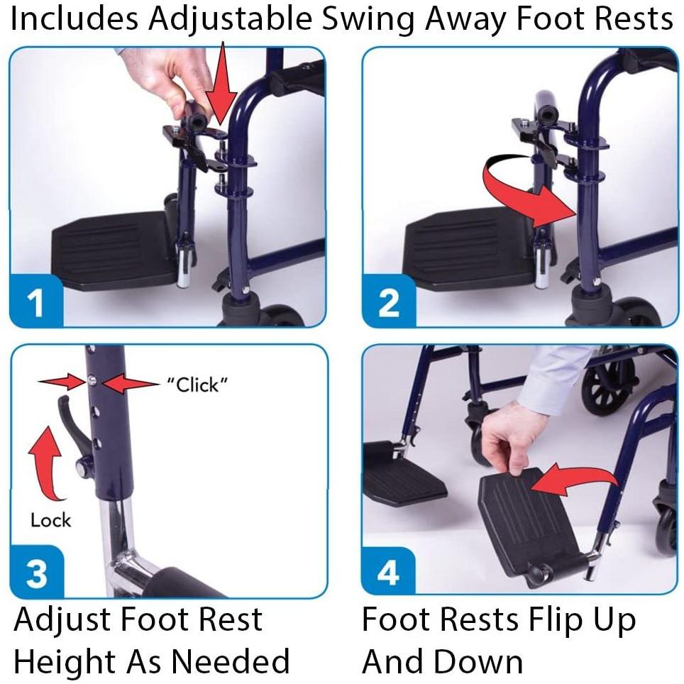 • Supports up to 136.1kg. The steel transport chair is durable and made for daily use. Ideal for anyone looking for a heavy-duty transport chair.