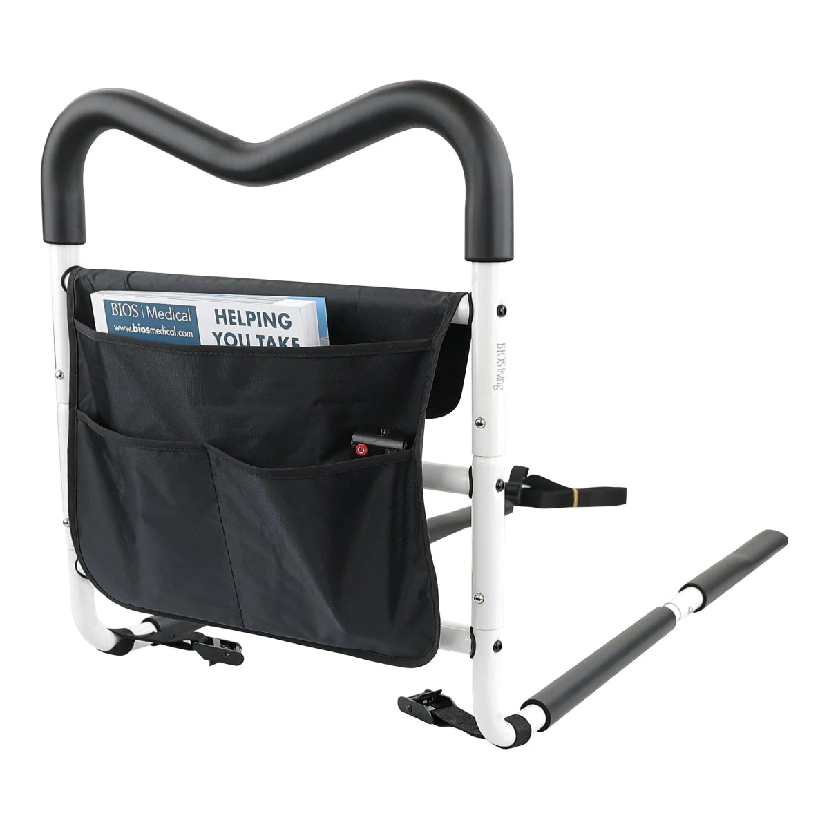 This adjustable M-shaped bedside handrail, aids in transferring, sitting, standing, or balancing. Easy to install and simple to use. Perfect for your home and suitable for travel. Fits any size bed width or mattress height. Safety straps for the adjustable bed rail are included to enable superior protection against movement or shifting.