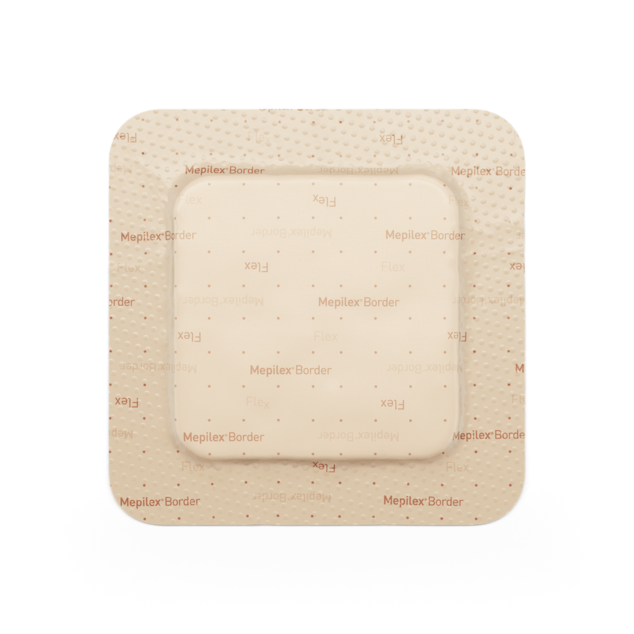 Mepilex® Border Flex is an all-in-one soft silicone foam dressing designed for moderate to high-exuding wounds. Exclusive Flex™ technology allows 360° stretch to conform securely to body contours and stay in place — even on difficult areas. Safetac® soft silicone layer helps minimize pain and skin trauma during removal.