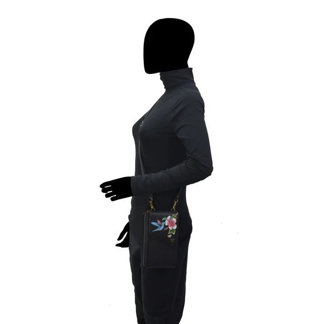 Anuschka Printed Leather Cell Phone Wallet Crossbody 1173-HGB-BLK