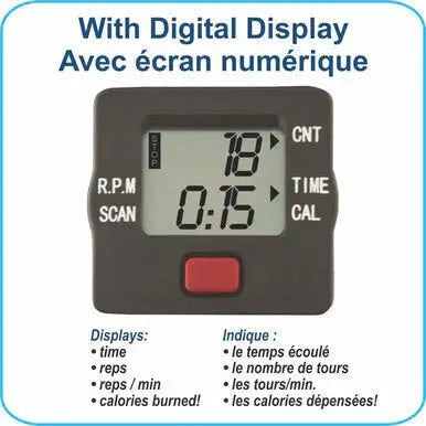 - Easy to Use: Tool-free setup. Features a built-in computer with LCD that measures time, revolutions (reps), reps/minute and calories burned. The wide variable resistance adjustment knob is compact and easy to grip.